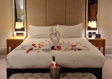 Romantic setting with luxurious interiors, soft lighting and privacy for unforgettable couple experiences.